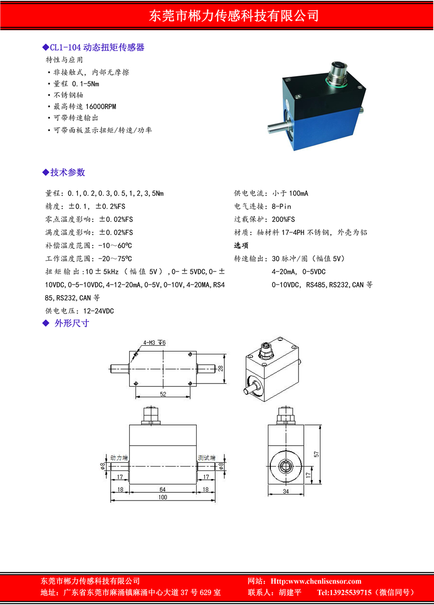 CL1-104(0.1-5Nm)动态扭矩传感器