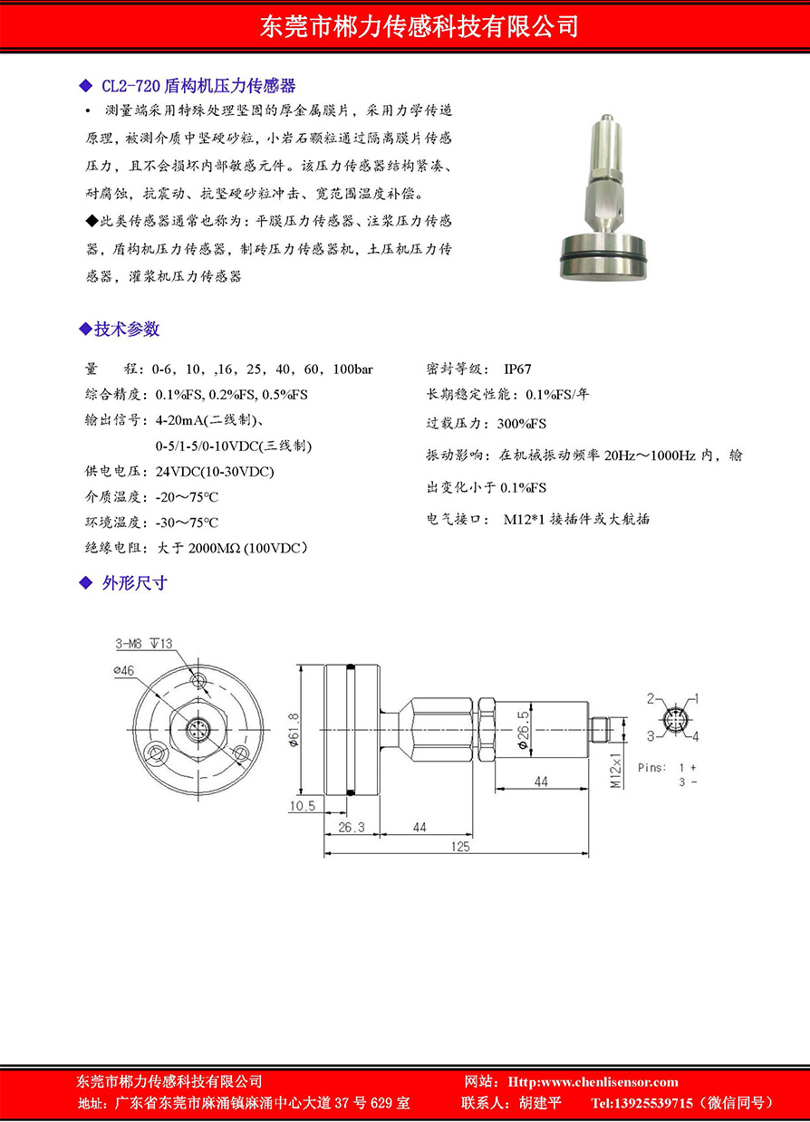 CL2-720盾构机压力传感器