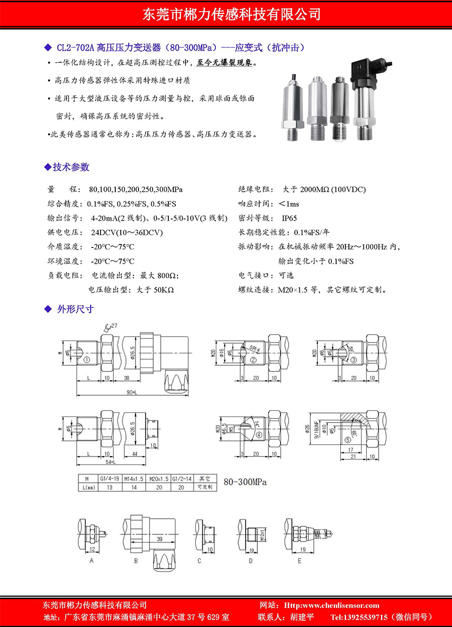 CL2-702A 高压压力变送器(80-300MPa)---应变式(抗冲击)