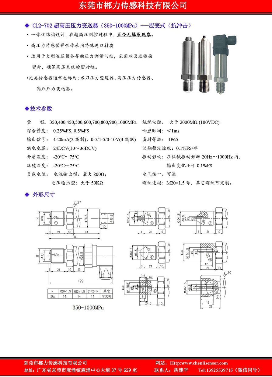 上一篇:CL2-702A 高压压力变送器(80-300MPa)---应变式(抗冲击)