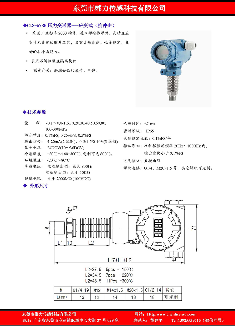 CL2-578H压力变送器---应变式(抗冲击)
