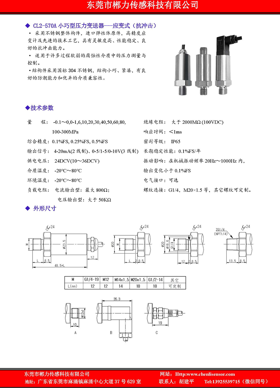 CL2-570A 小巧型压力变送器---应变式(抗冲击)