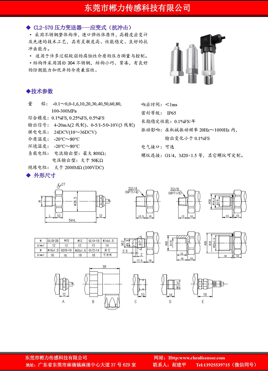 CL2-570A 小巧型压力变送器---应变式(抗冲击)