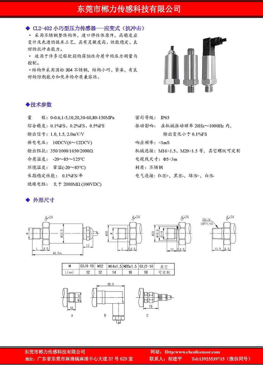CL2-410 小巧型压力传感器