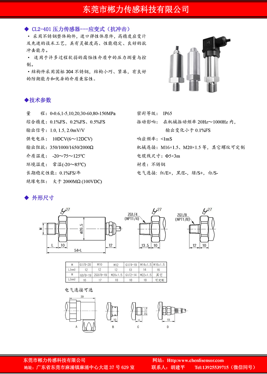 CL2-402小巧型压力传感器---应变式(抗冲击)