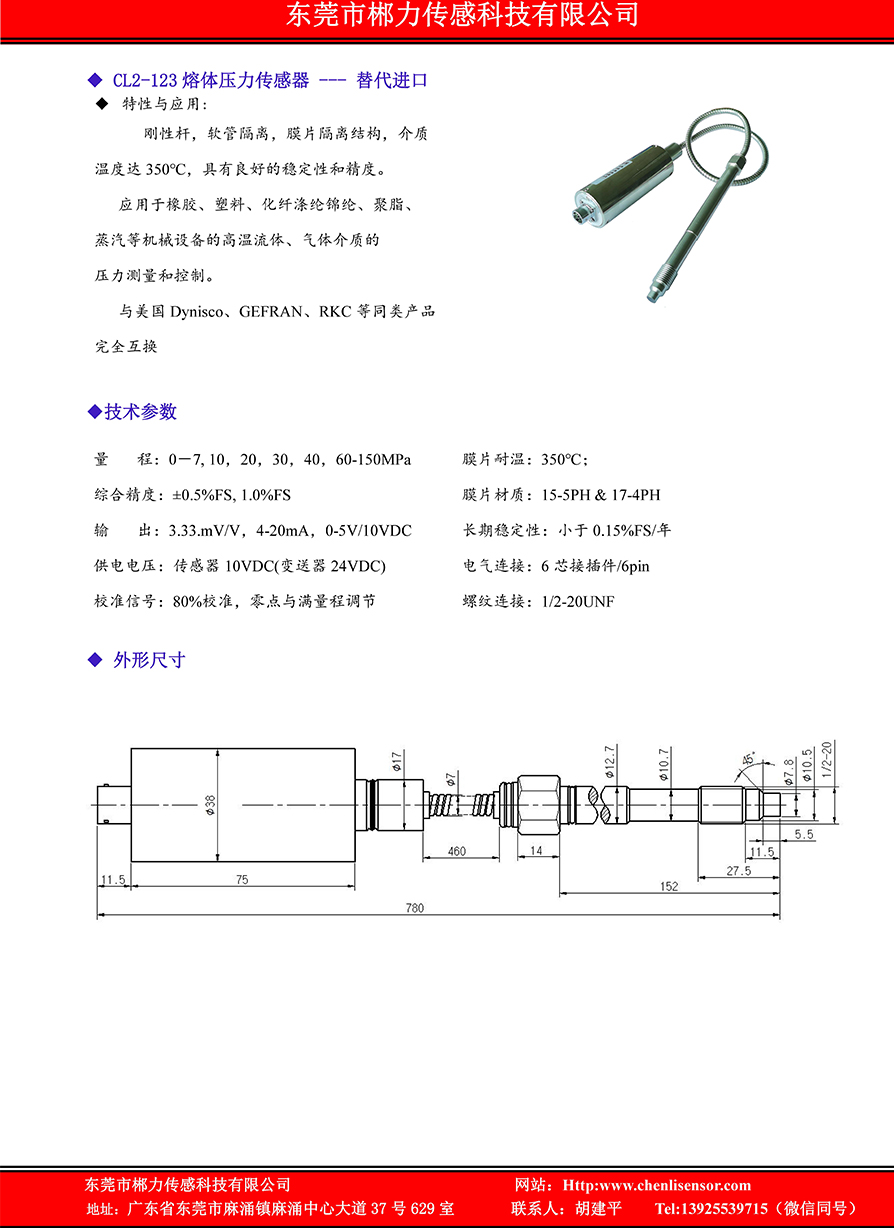 CL2-112 熔体压力传感器--直杆型--- 替代进口