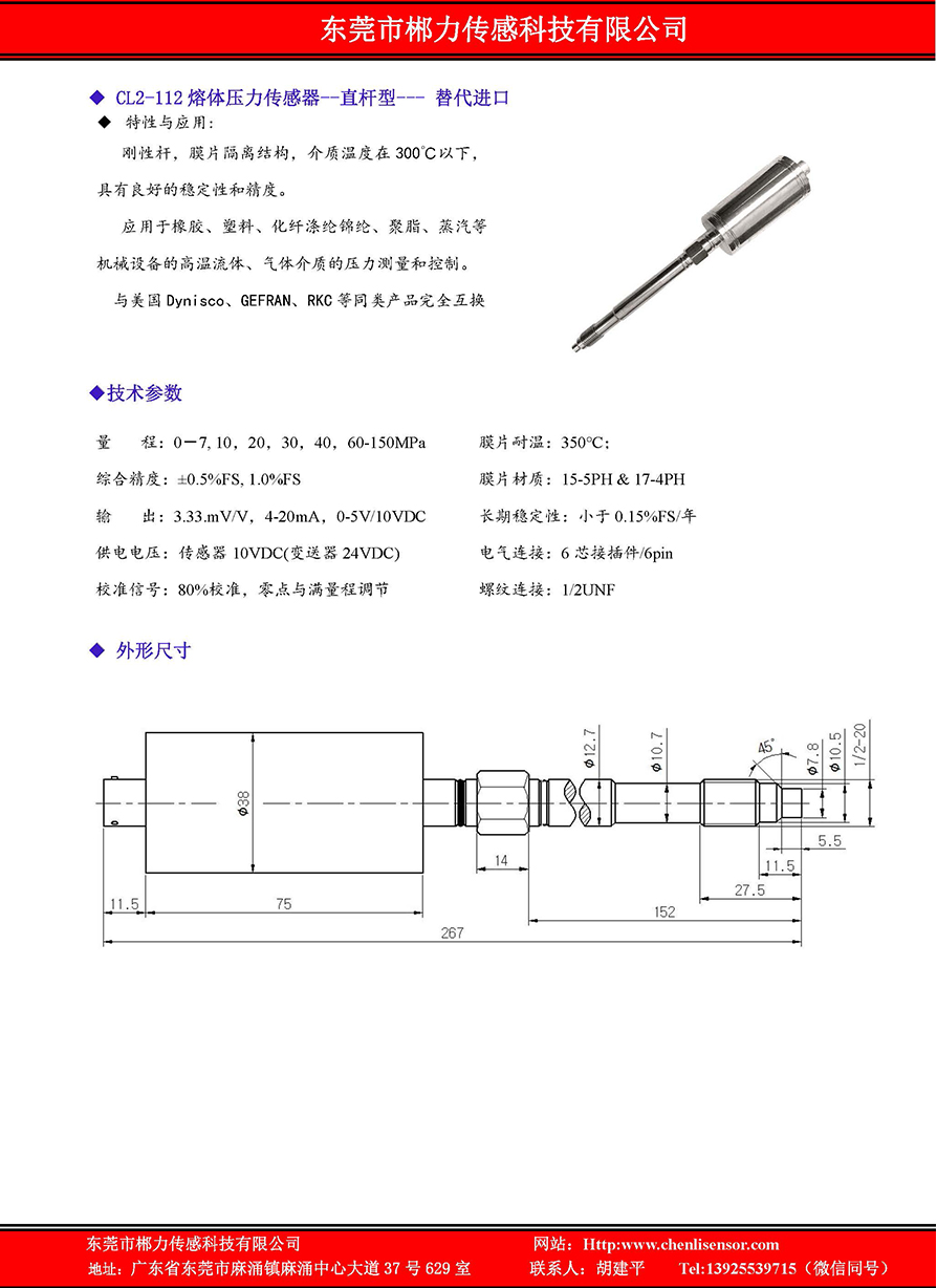 CL2-112 熔体压力传感器--直杆型--- 替代进口