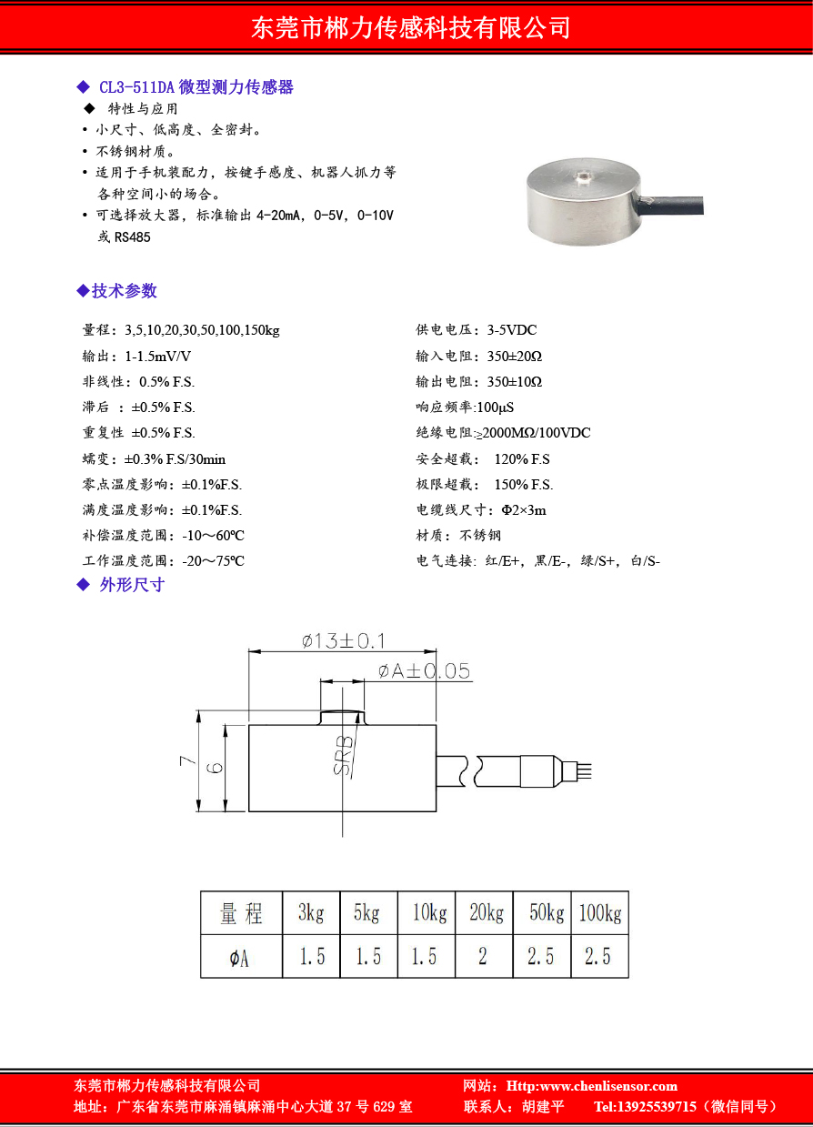 CL3-511DA 微型测力传感器